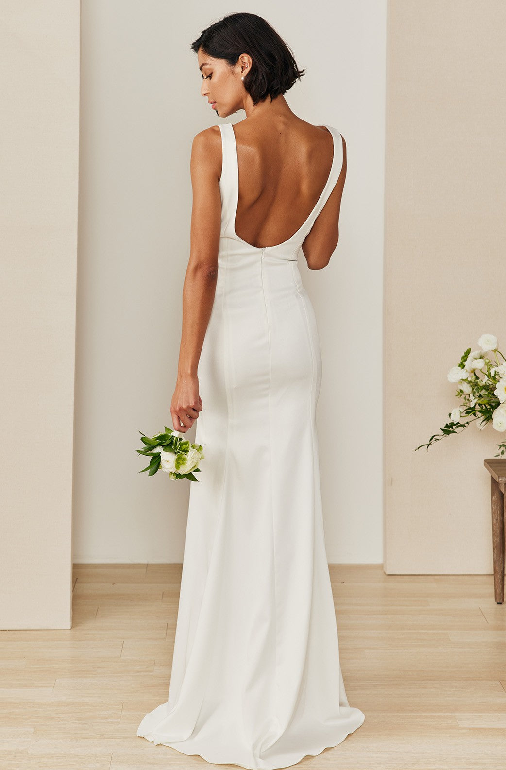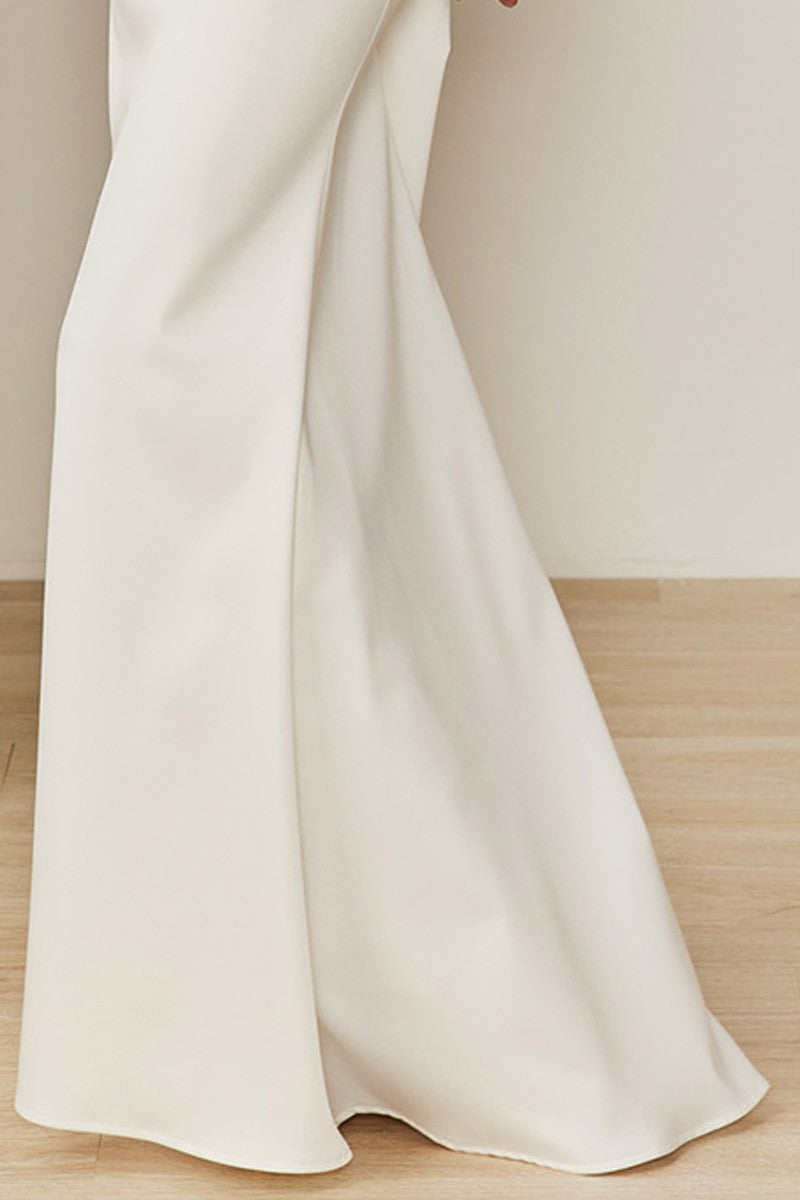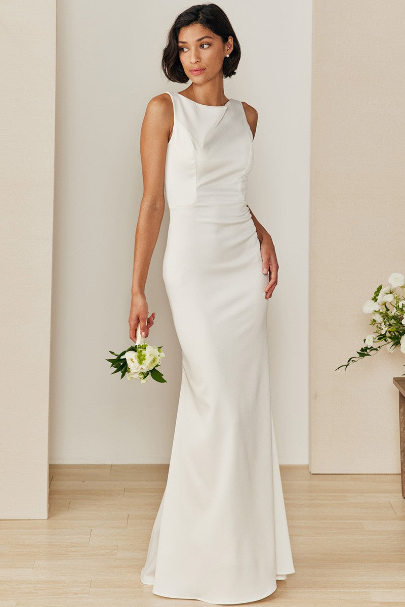 Sleeveless Boat Neck Trumpet Gown.